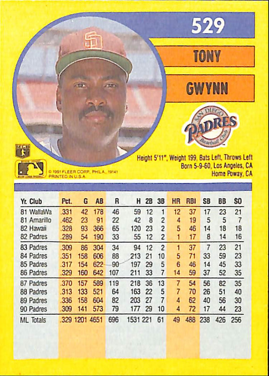 1991 Fleer Tony Gwynn MLB Baseball Card #529 - Mint Condition