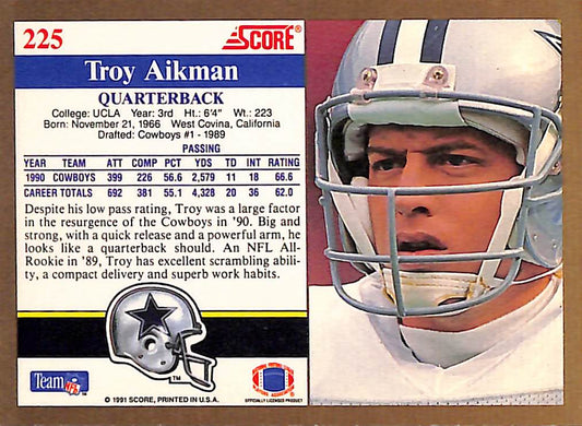1991 Score Troy Aikman Football Card #225 - Mint Condition