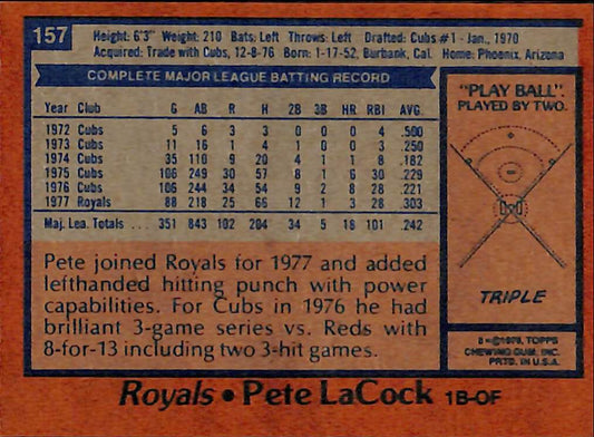1978 Topps Pete LaCock Vintage Baseball Card #157 - Mint Condition