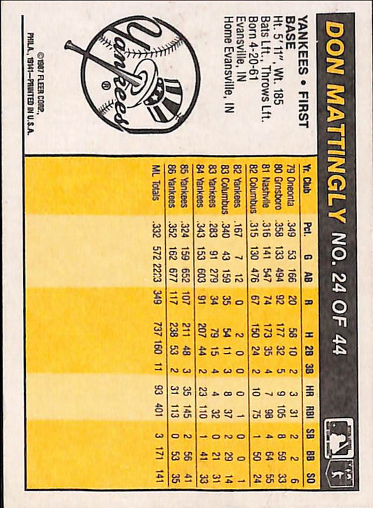 1987 Fleer Award Winners Don Mattingly MLB Baseball Card #24 - Mint Conditon