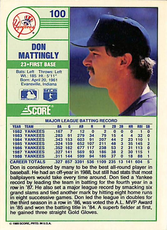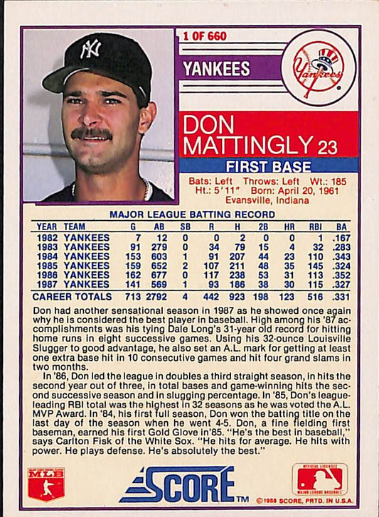 1988 Score Don Mattingly MLB Baseball Card #1 - Mint Condition