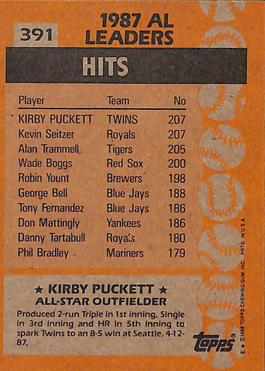 1988 Topps All-Star Kirby Puckett MLB Baseball Card #391 - Mint Condition
