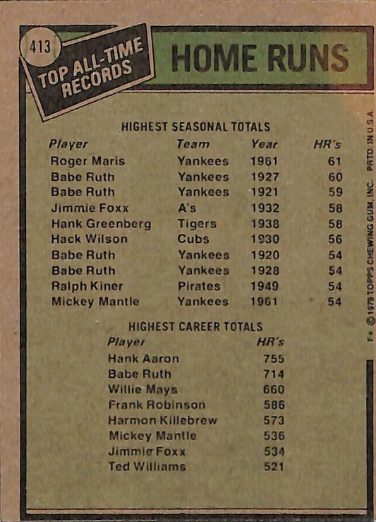 1979 Topps Roger Marris and Hank Arron Baseball Card #413 - Great Condition