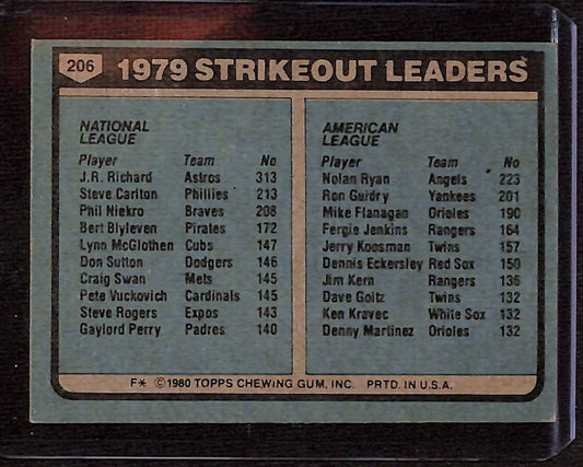 1980 Topps Nolan Ryan Strikeout Leaders Vintage Baseball Card #206 - Mint Condition