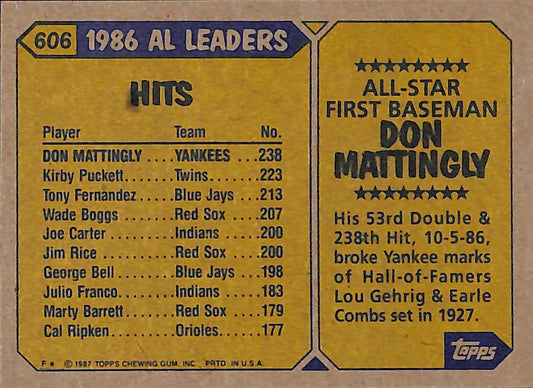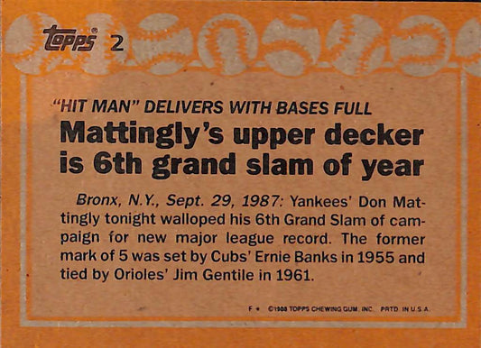 1987 Topps Don Mattingly '87 Record Breaker Baseball Card #2 - Mint Condition