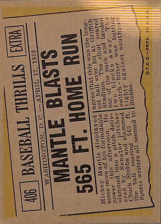 1996 Topps Mickey Mantle 565ft Home Run Baseball Error Card #406 - Dual Error Card - Very Rare -Mint Condition