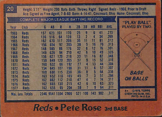 1979 Topps Pete Rose Vintage MLB Baseball Card #20 - Good Condition