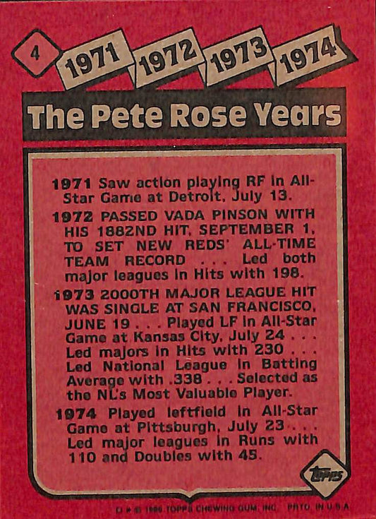1986 Topps Pete Rose Vintage Baseball Card #4 - Mint Condition