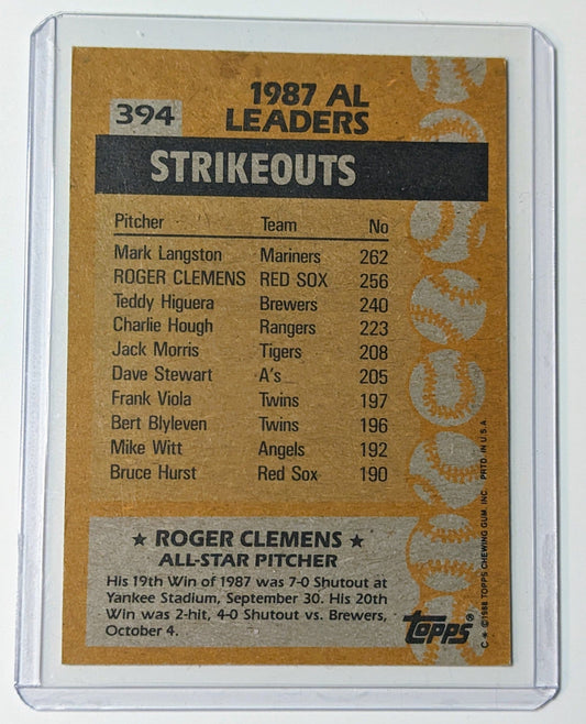 1988 Topps Rodger Clemens Baseball Card #394 - Mint Condition
