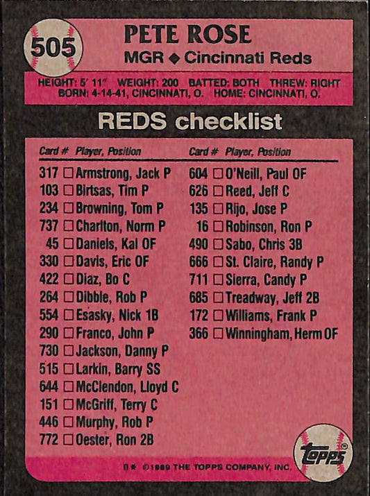 1989 Topps Pete Rose Vintage Baseball Card #505 - Mint Condition