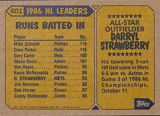 1987 Topps All-Star Vintage Darryl Strawberry MLB Baseball Card #601 - Mint Condition