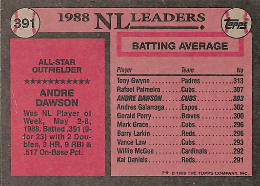 1989 Topps All- Star Andre Dawson Vintage Baseball Card #391 - Mint Condition