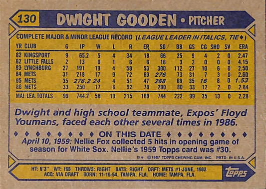 1987 Topps Dwight Gooden MLB Vintage Baseball Card #130 - Mint Condition
