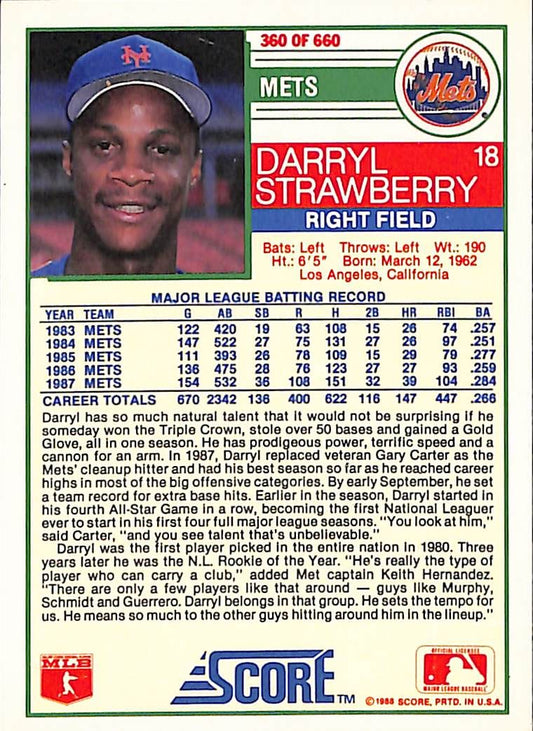 1988 Score Vintage Darryl Strawberry MLB Baseball Card #360 - Mint Condition