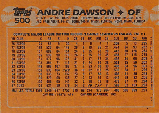 1988 Topps Andre Dawson Vintage Baseball Card #500 - Mint Condition