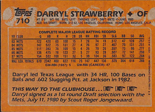1988 Topps Vintage Darryl Strawberry MLB Baseball Card #710 - Good Condition