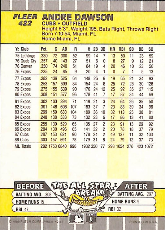 1989 Fleer Andre Dawson Vintage Baseball Card #442 - Mint Condition