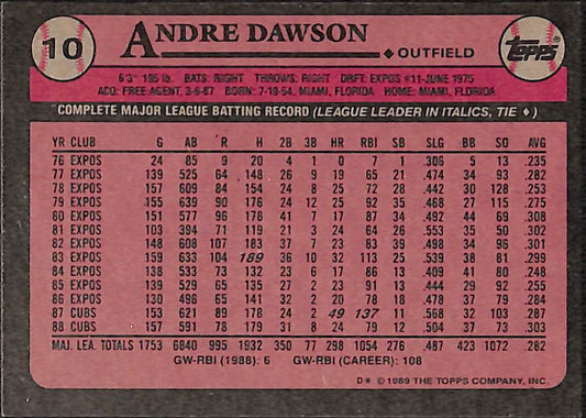 1989 Topps Andre Dawson Vintage Baseball Card #10 - Mint Condition