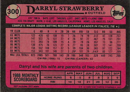 1989 Topps Vintage Darryl Strawberry MLB Baseball Card #300 - Mint Condition
