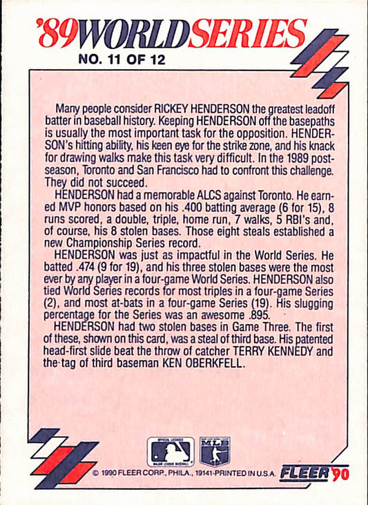 1990 Fleer "89 World Series Rickey Henderson Vintage Baseball Card #11 - Mint Condition