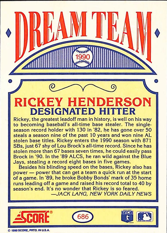1990 Score Rickey Henderson Vintage Baseball Card #696 - Mint Condition