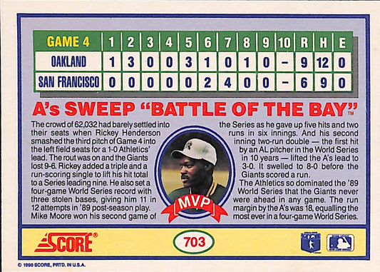 1990 Score World Series Game 4 MVP Rickey Henderson Vintage Baseball Card #703 - Mint Condition