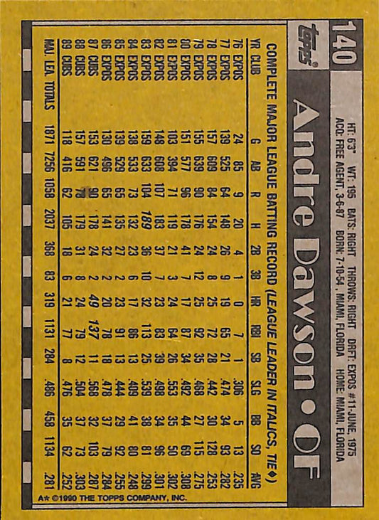 1990 Topps Andre Dawson Vintage Baseball Card #140 - Mint Condition