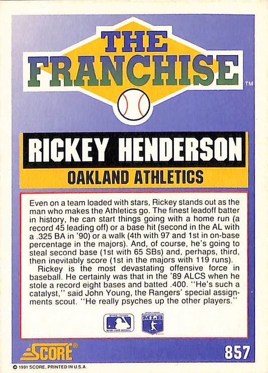 1991 Score The Franchise Rickey Henderson Vintage Baseball Card #857 - Mint Condition