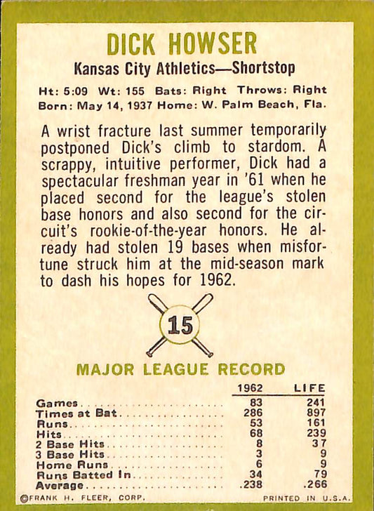 1963 Fleer Dick Howser Vintage Baseball Card #15 - Mint Condition