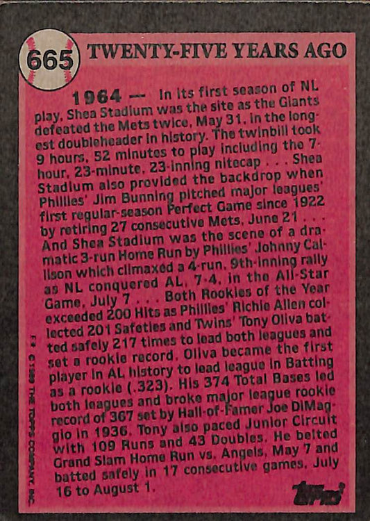 1989 Topps Tony Oliva Turn Back The Clock Vintage Baseball Card #665 - Mint Condition