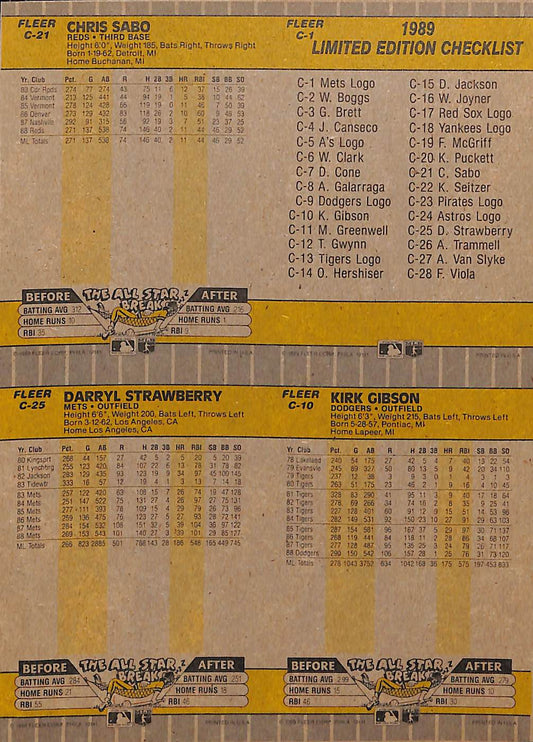 1989 Vintage Fleer Wax Box Bottom of Uncut Cards - Chris Sabo - Kirk Gibson - Darryl Strawberry - Rare Mets logo